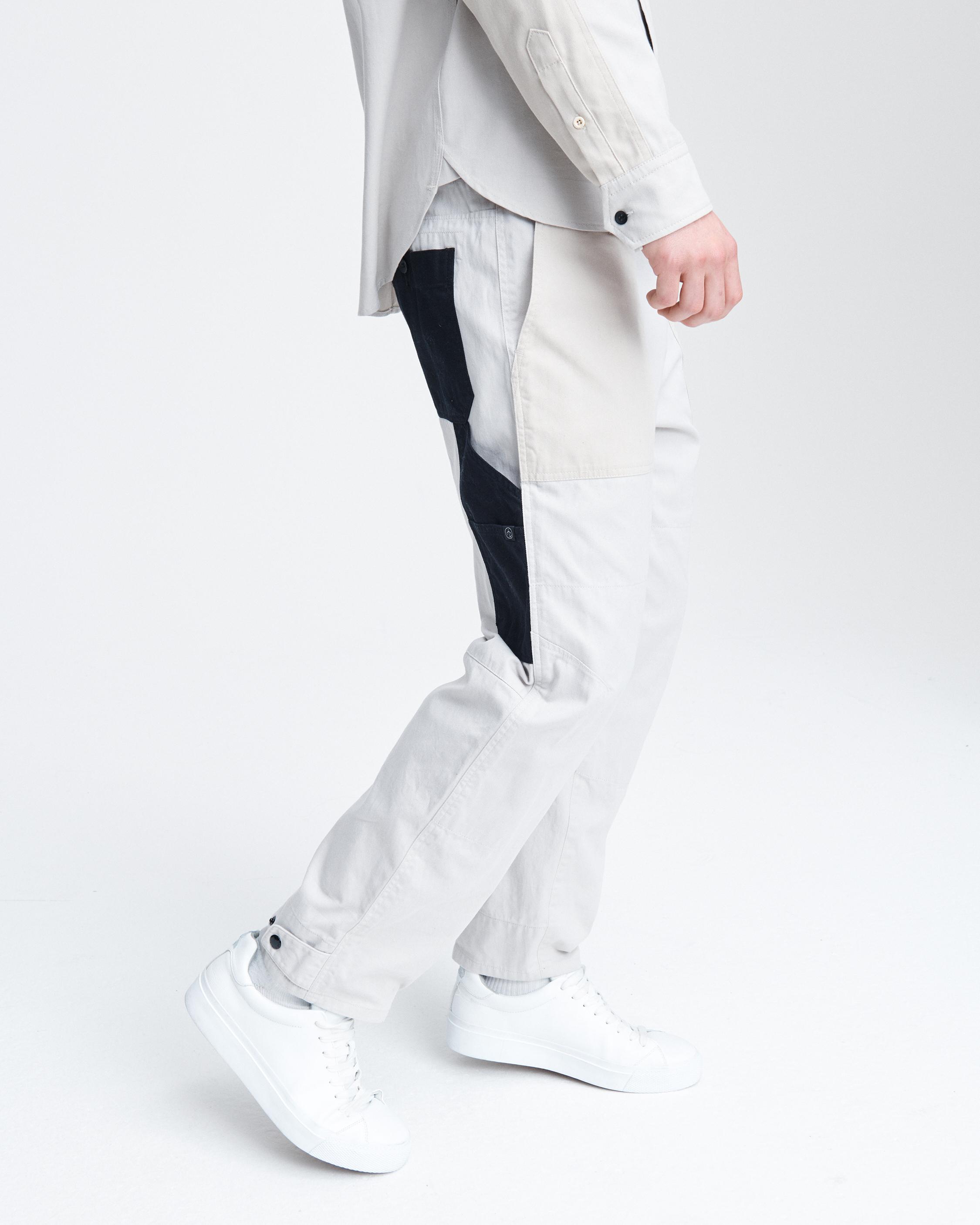 Made from a Japanese twill, this is a flat-front pant with top applied contrast and colored workwear-inspired pockets at the front and sides, and one patch pocket on right back panel with a button closure. Cinch the waist band with metal adjusters, this pant is all about the details.