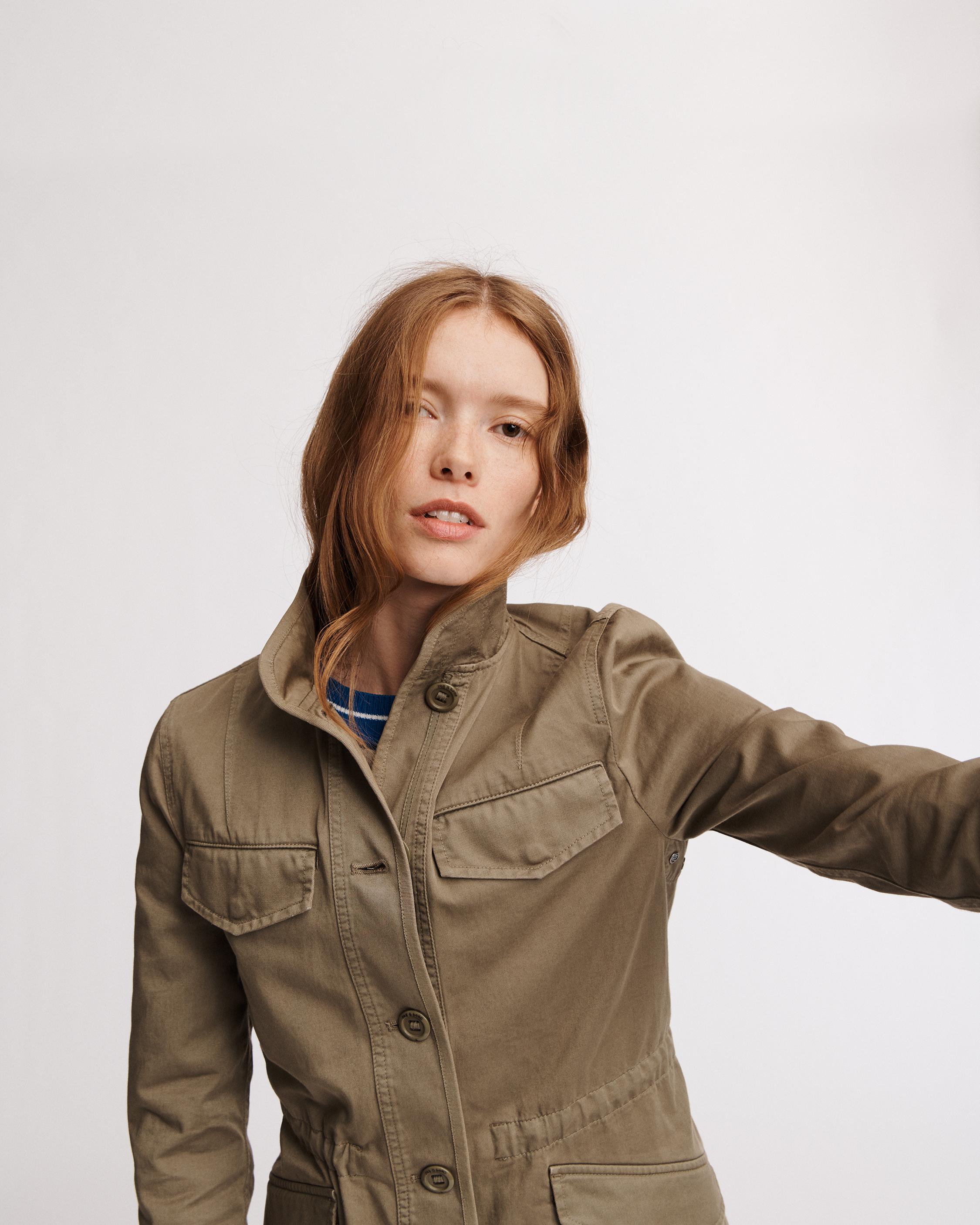 Slot buttons, zip zag stitching at neck, combo fabrics to give different tones of overdye