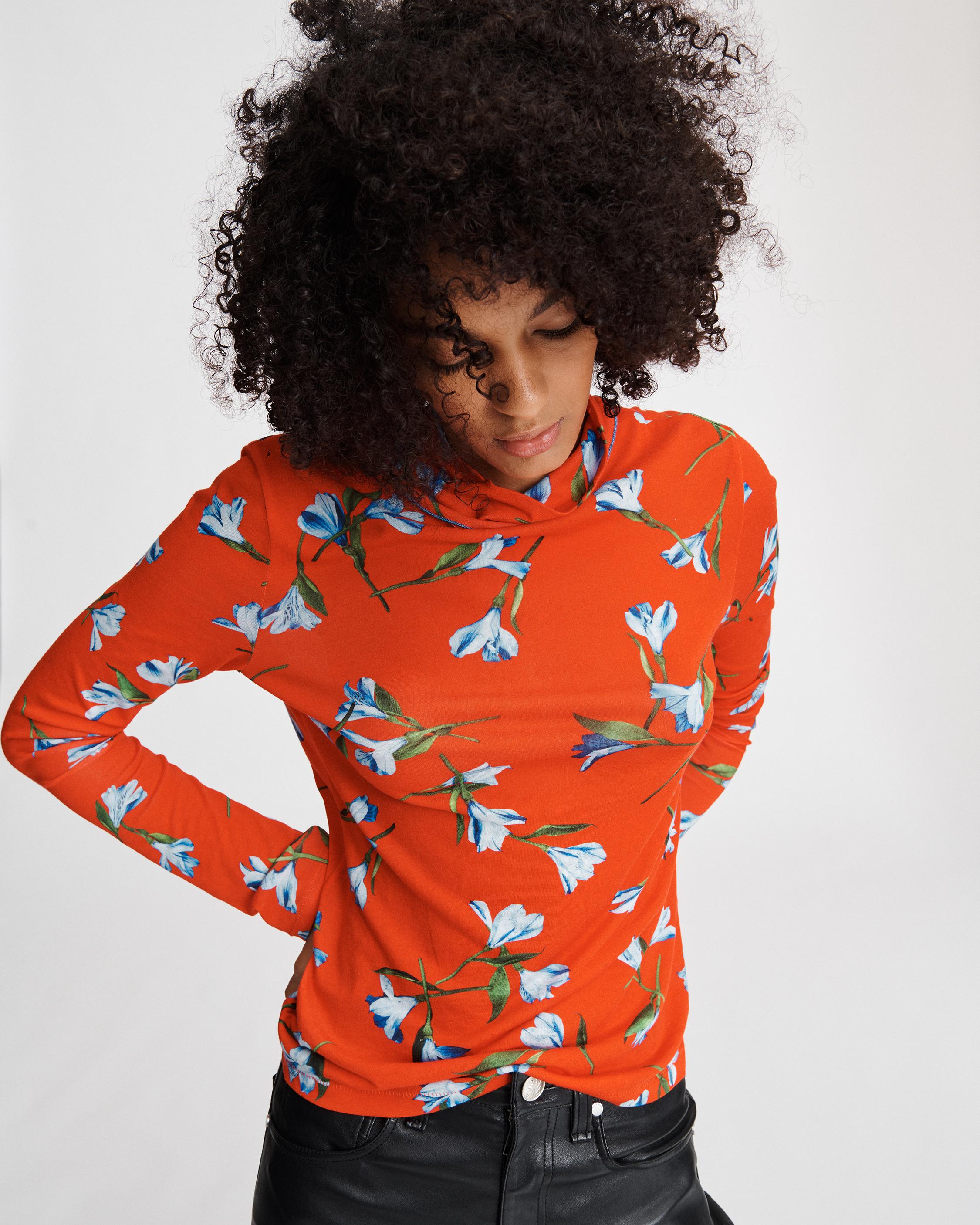 A slim fit and super light weight turtleneck in a pretty floral printed tissue jersey.